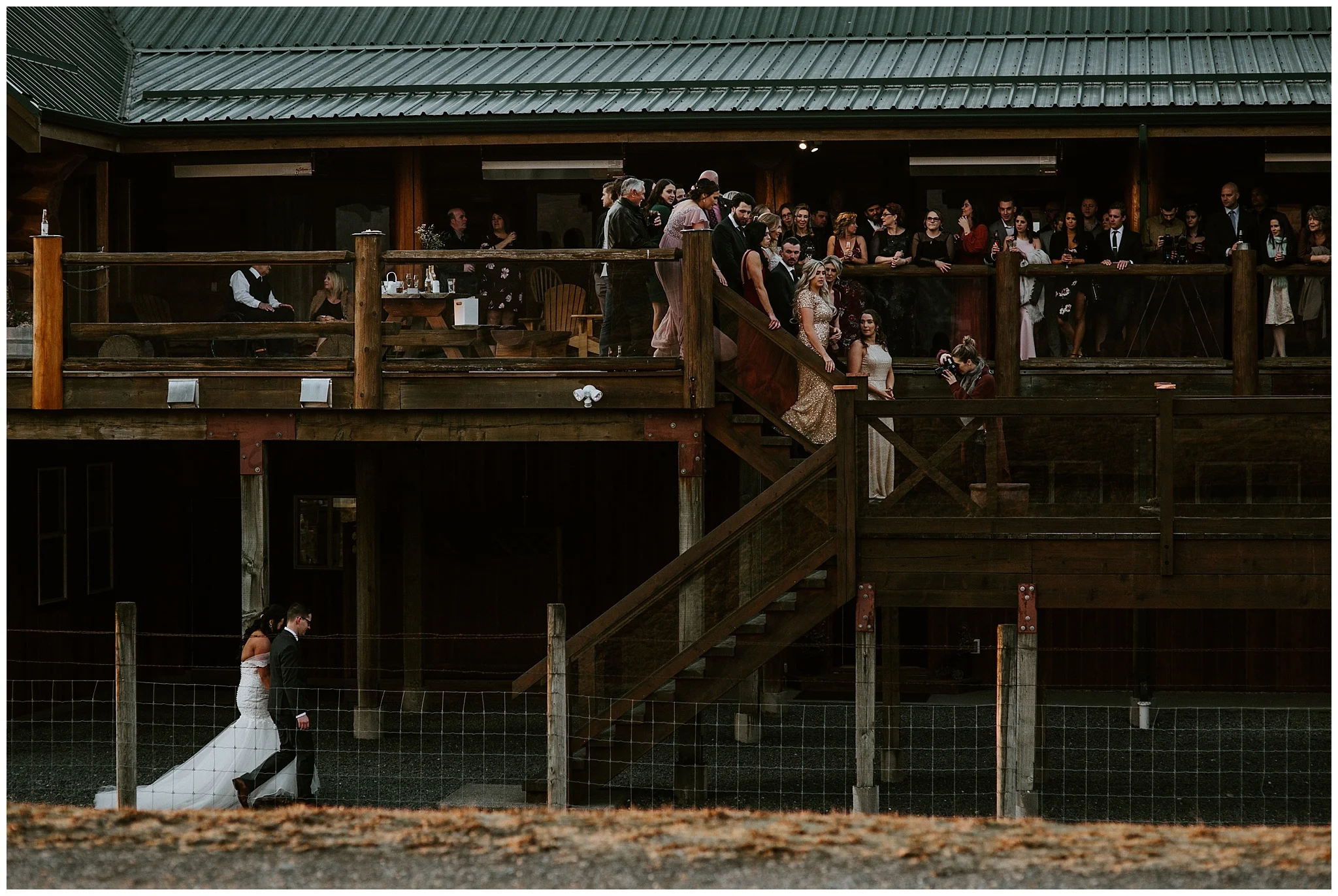 I’m fairly certain that it’s impossible to visit The Fraser River Lodge and not fall in love with this rustic West coast venue. My favourite part of the day could easily have been the golden hour portraits with the sunset over Mt. Cheam, or maybe how the couple said private vows in front of the river. It could also easily be the party vibe and multiple tequila shots or hilarious speeches or how there was 19 people in this rowdy bridal party, but if I had to pick, I think it would be the first dance on the deck. I make this suggestion anytime I have a wedding at this venue. I love how the guests can watch from the stairs surrounding the bride and groom. Scroll down to check it out!